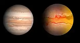 ![]() Сравнение размеров WASP-2b и Юпитера | |