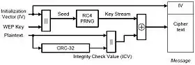 В основе WEP лежит поточный шифр RC4, выбранный из-за своей высокой скорости работы и возможности использования переменной длины ключа. Для подсчета контрольных сумм используется CRC32.