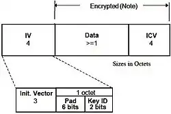 - малая разрядность ключа и вектора инициализации (англ. Initialization vector),