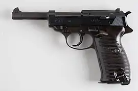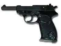 - Walther P38 — серийно выпускался с 1939 до весны 1945 года (уже после капитуляции Германии, в 1945—1946 гг. ещё некоторое количество пистолетов было собрано из ранее выпущенных деталей), а также в 1957—2004 в ФРГ[7]