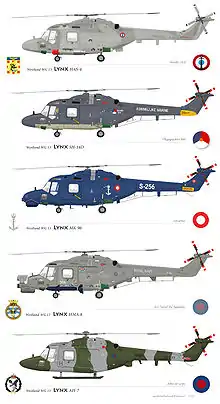 Великобритания: 25 Lynx HMA8 и 21 Lynx AH9A, по состоянию на 2016 год[13]. В 2018 году все Lynx AH9A выведены из эксплуатации.