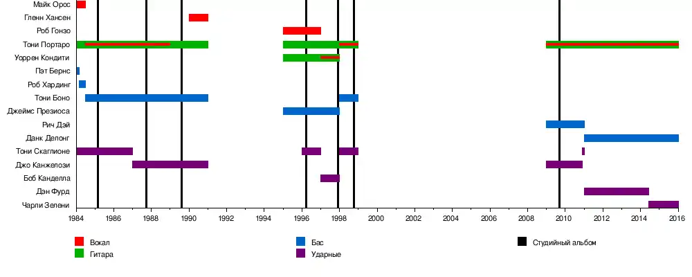 - Тони Портаро — гитара (1984-1990, 1995-1999, 2007–наст. вр.), вокал (1984-1988, 1998-1999, 2007–наст. вр.)