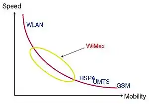 Основное различие двух технологий состоит в том, что фиксированный WiMAX позволяет обслуживать только «статичных» абонентов, а мобильный ориентирован на работу с пользователями, передвигающимися со скоростью до 150 км/ч. Мобильность означает наличие функций роуминга и «бесшовного» переключения между базовыми станциями при передвижении абонента (как происходит в сетях сотовой связи). В частном случае мобильный WiMAX может применяться и для обслуживания фиксированных пользователей[2].