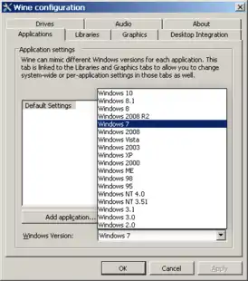 - PlayOnLinux — графический интерфейс GTK для настройки Wine. Поддерживает скрипты установки, параллельные разные версии wine для отдельных приложений и позволяет использовать для каждого приложения Wine свой профиль.