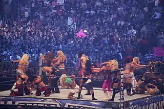 - b В поединке также участвовали: Алисия Фокс, Бри Белла, Ив Торрес, Гейл Ким, Jackie Gayda, Джиллиан Холл, Джой Джиованни, Кэтти Ли Бёрчил, Келли Келли, Лейла, Мария, Марис, Мишель МакКул, Микки Джеймс, Молли Холли, Наталья, Никки Белла, Роза Мендес, Санни, Тиффани, Торри Уилсон и Виктория.[12][13]
