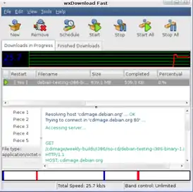 wxDownload Fast (также известный как wxDFast) — это свободный менеджер закачек для Microsoft Windows, Mac OS X, BSD, Linux с открытым исходным кодом. Кроме того, является многопоточным менеджером закачек (ускоритель загрузок и сегментированная закачка), это означает, что wxDownload Fast способен разделить файл на множество частей и скачать их одновременно, тем самым уменьшив время передачи.