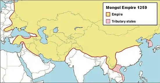 - 1271 — Хубилай становится основателем династии Юань, по сути его власть распространяется лишь на Китай. В Монголии идёт тридцатилетняя гражданская война (1274—1301) между Хайду и правительственными войсками. Другие части империи становятся фактически независимыми государствами — Золотая Орда, Чагатайский улус, государство ильханов Ирана.