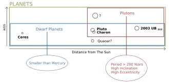 Плутон — это карликовая планета, согласно вышеуказанной классификации, и он является прототипом для новой категории транснептуновых объектов.[1]