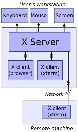 X Window System использует клиент-серверную модель: X‑сервер обменивается сообщениями с различными клиентскими программами. Сервер принимает запросы на вывод графики (окон) и отправляет обратно пользовательский ввод (от клавиатуры, мыши или сенсорного экрана). X‑сервер может быть: