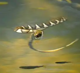 Любит затопленные рисовые поля, места возле прудов, озёр, болот и рек. Встречается на высоте до 1000 м над уровнем моря. Активен днём, иногда ночью. Очень агрессивная змея. Питается рыбой и лягушками.