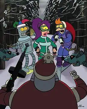 ![]() Фрай, Лила, Бендер и Робот-Санта | |