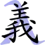 Традиционный китайский иероглиф может означать «праведный», «справедливый» или «брать под контроль».