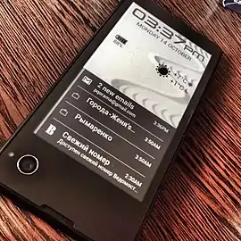 YotaPhone («Йотафон») — LTE-совместимый смартфон компании «Yota Devices», выпущенный в декабре 2013 года. Аппарат оснащен двумя экранами, функционирующими независимо. Первый экран традиционный ЖКИ, второй экран — дисплей по технологии электронных чернил.