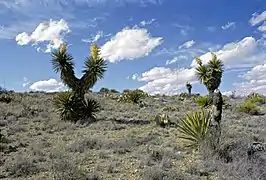 ![]() Цветущая юкка Y. faxoniana в пустыне Чиуауа | ||||||||||||