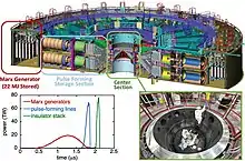 Напряжение, необходимое для создания столь высокого тока формируется с помощью Генераторов Маркса.
