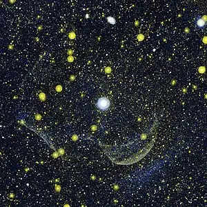 ![]() Фотография Z Жирафа и её оболочки, сделанная GALEX, НАСА[2] | |||||||||