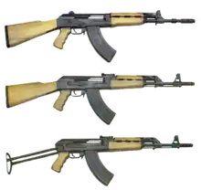 - Tabuk — длинный ствол, штампованная ствольная коробка, фиксированный приклад (иракская снайперская винтовка)